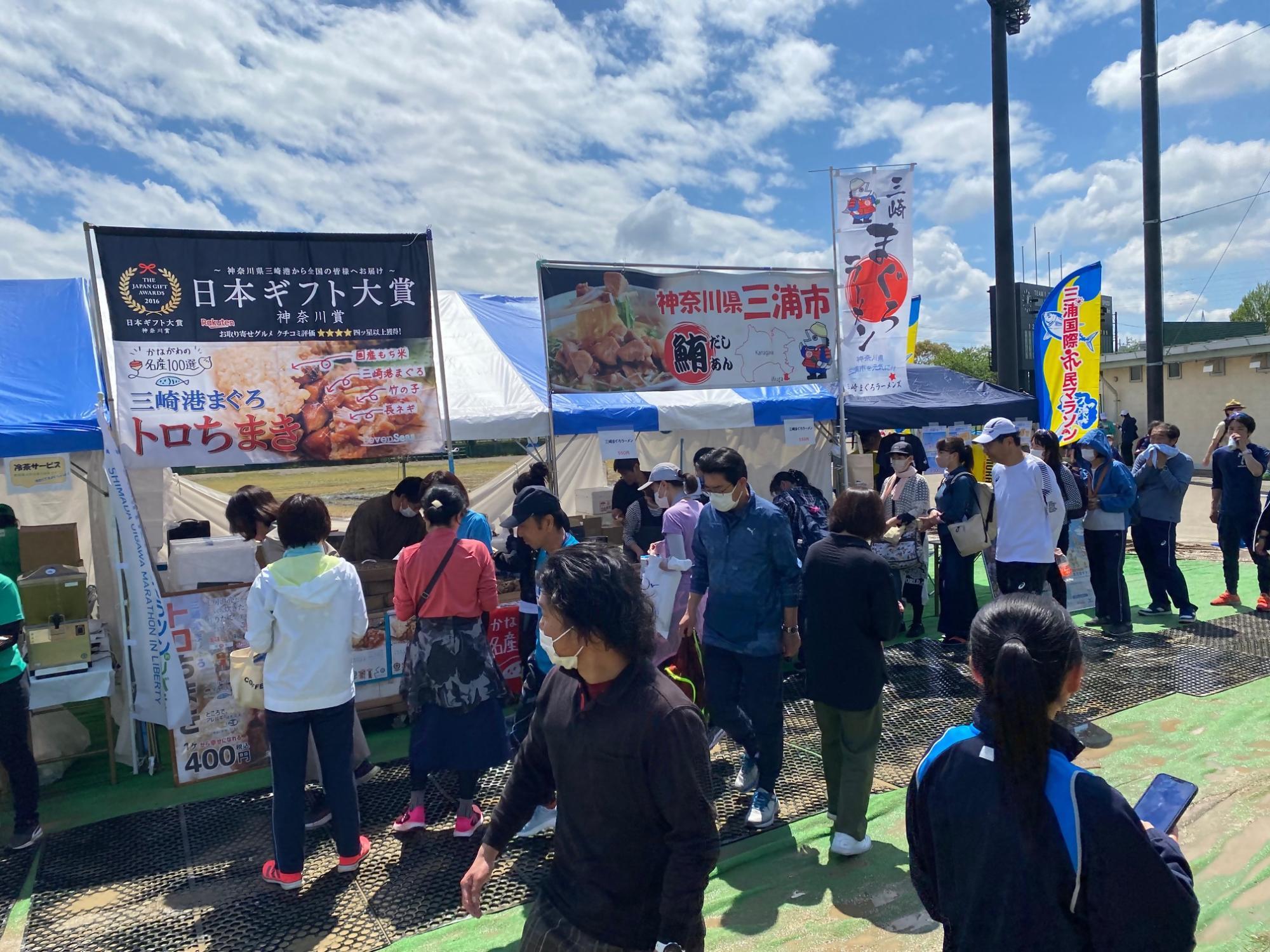 三浦市のブースでは、「三崎まぐろラーメン」、「三崎港まぐろトロちまき」を販売し、ランナーをはじめ多くの方々にお越しいただきました。