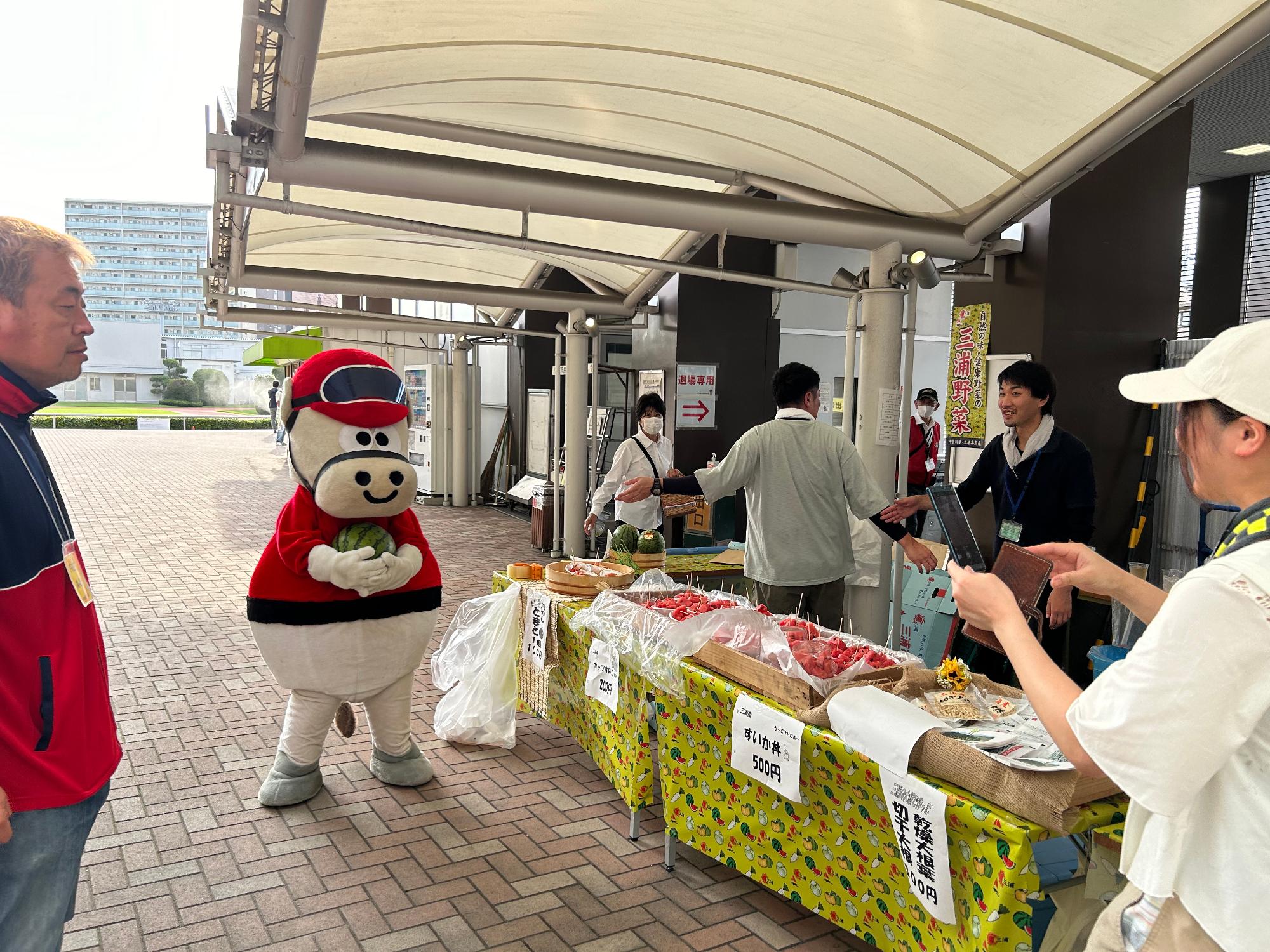 三浦市のブースでは、カップすいかなどレースを観戦しながらお楽しみいただける品の販売を行ったほか、三浦国際市民マラソン等のPRとして、パネルの展示、三浦国際市民マラソンのSNSフォローで参加可能なガラポン抽選会を開催し、多くの方々にお越しいただきました。