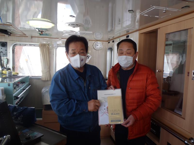 令和4年1月28日(金曜日)第1勝運丸【岩手県宮古市・金沢漁業株式会社】(水揚量160トン)が入港され、三浦市長が表敬訪問しました。